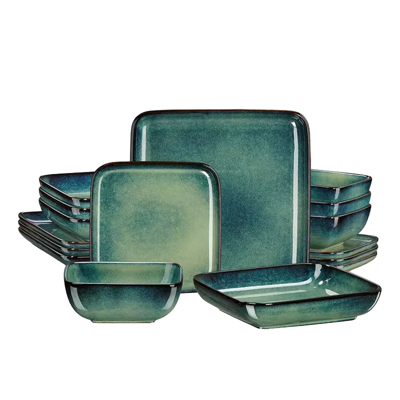 Un service japonais 16 pièces aux nuances bleu-vert uniques. Élégance, qualité et caractère pour sublimer chaque repas.