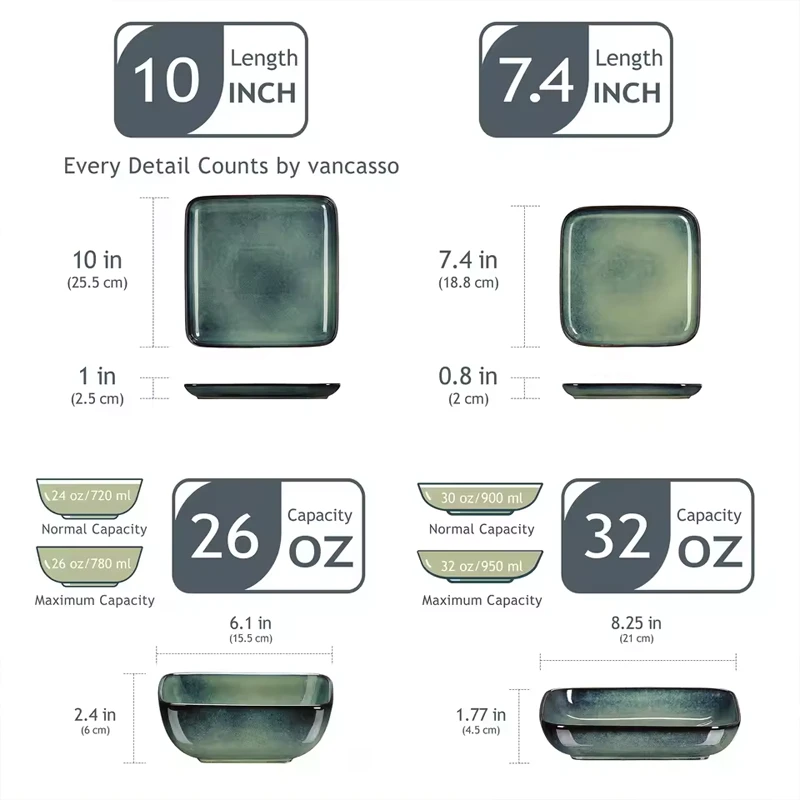 Transformez chaque repas en un moment d’exception avec le Service Vaisselle Japonais 16 Pièces Aozora. Son design inspiré des nuances du ciel et de l’océan apporte une touche de sérénité et de raffinement à votre table. Chaque pièce est travaillée avec un double émaillage réactif qui crée cet effet nuancé unique, comme une aquarelle posée sur de la céramique. Ce n’est pas juste de la vaisselle, c’est une mise en scène. Disposer les assiettes, remplir les bols, servir un plat… tout devient plus beau, plus intentionnel. La forme carrée apporte un style moderne et graphique, tandis que le dégradé vert-bleuté invite au calme et au partage. Que ce soit pour un dîner entre amis, un repas du quotidien ou une table prête pour les fêtes, le service Aozora donne une vraie personnalité à votre intérieur. Il met en valeur vos plats, même les plus simples, grâce à son design inspiré de la céramique artisanale japonaise.