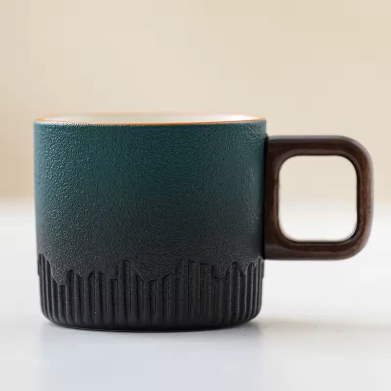 Une tasse compacte et chaleureuse en céramique vert forêt, parfaite pour savourer vos cafés avec style. Texture unique et design moderne.